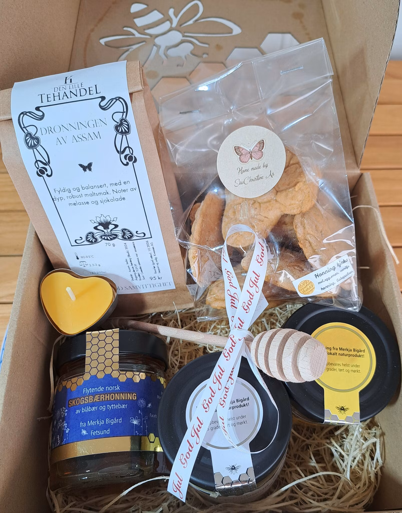 Det nærmer seg jul og mange ønsker å gi noen små gaver med lokale produkter. Vi har et lite utvalg av fine gave-esker med honning og produkter fra våre samarbeidspartnere.