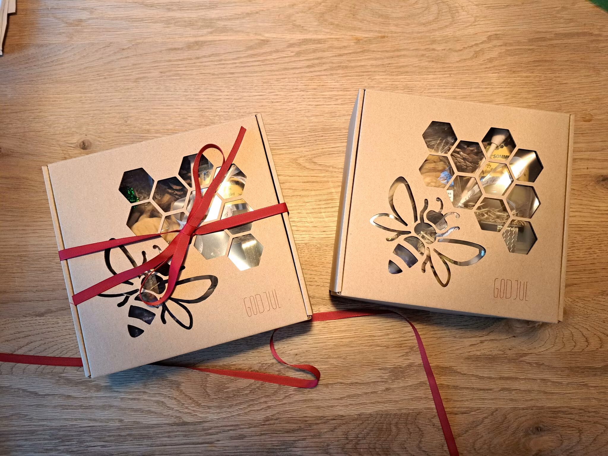 Vi kan pynte gaveeskene med sløyfe, litt julepynt og stemple «god jul» på esken om det skal være julegave. Uten ekstra kostnader. Bare legge inn kommentar «som julegave» i bestillingen.