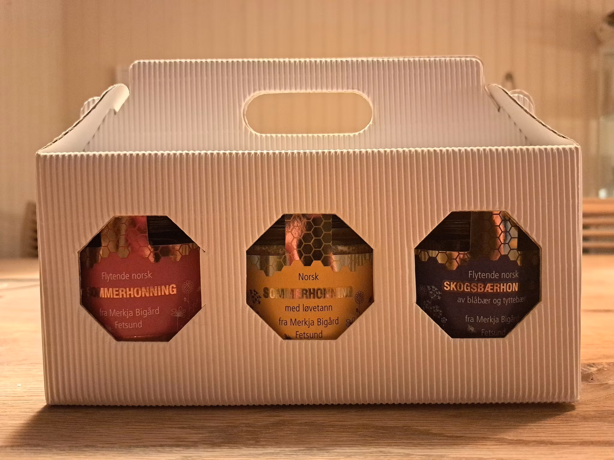 Gavepakke med 3 forskjellige honninger.